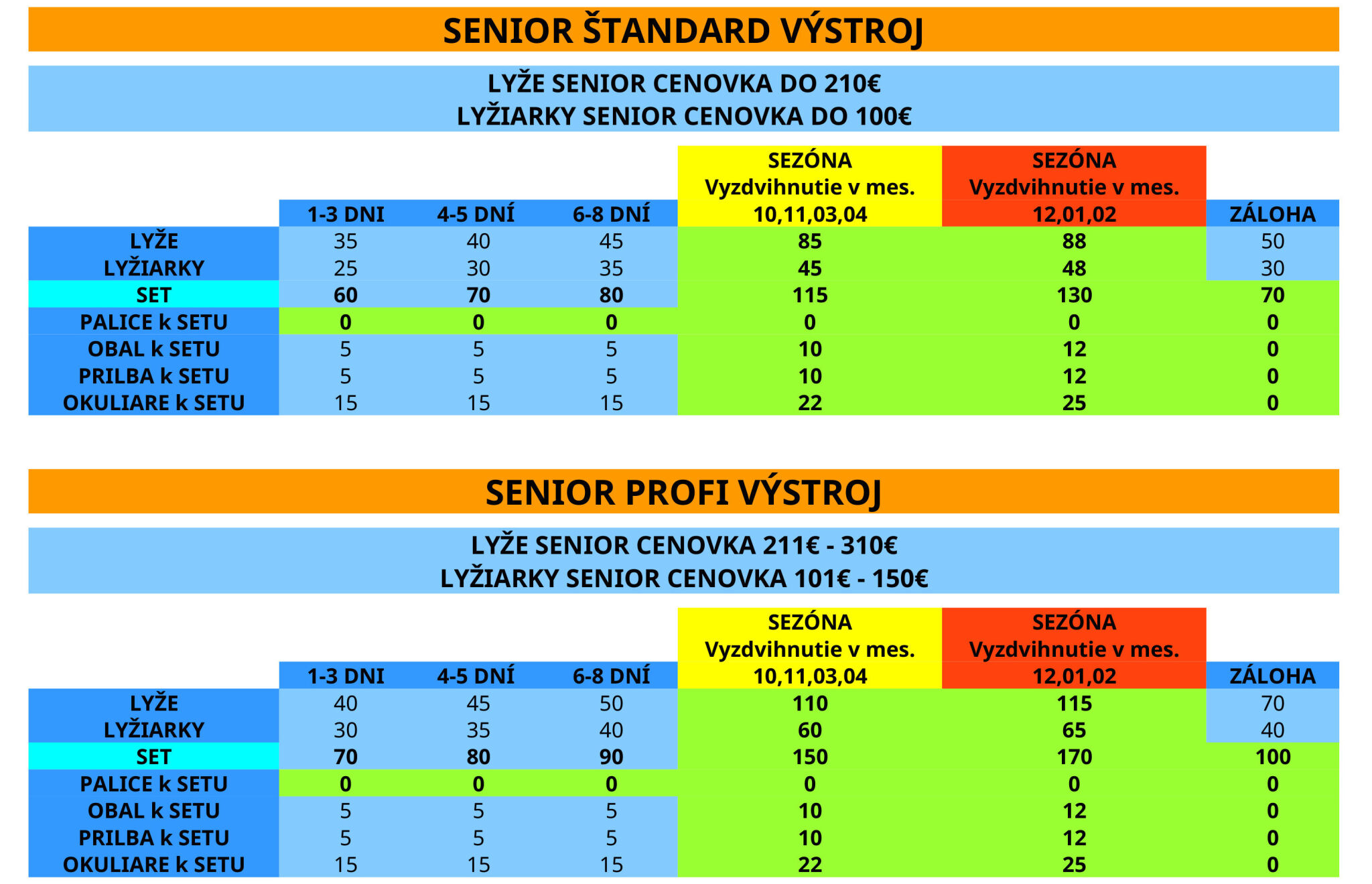 PONUKA PLATÍ NA KRÁTKODOBÉ ZAPOŽIČANIE (3-8DNÍ) AJ NA CELÚ SEZÓNU💙